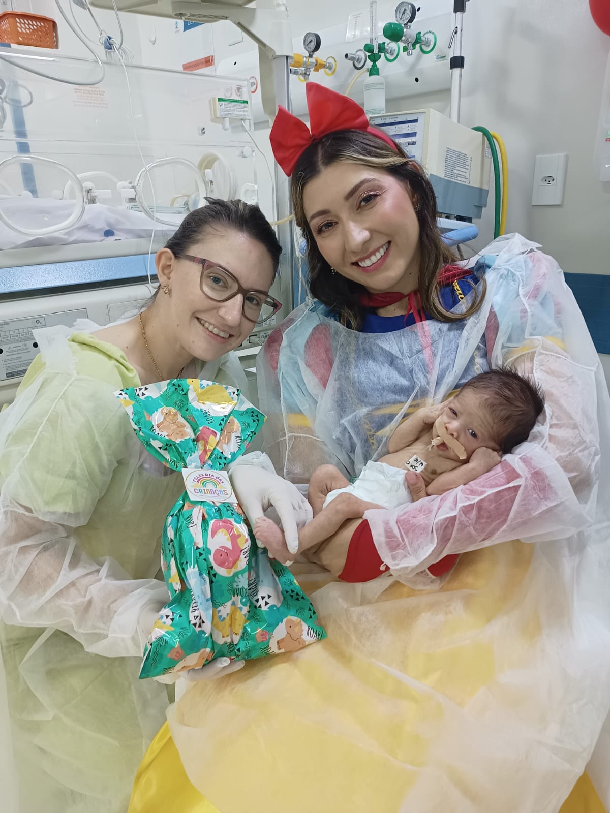 A programação ganhou ainda mais brilho com a presença da advogada Francielly Foiani Ramirez Kramer, conhecida na cidade pelo trabalho voluntário e pelo personagem que a consagrou: a “Princesa Branca de Neve”. Durante todo o ano, ela arrecadou brinquedos e, no Dia das Crianças, fez a entrega pessoalmente às crianças internadas. A quantidade de doações foi tão significativa que até irmãos e amiguinhos que estavam em visita receberam presentes.