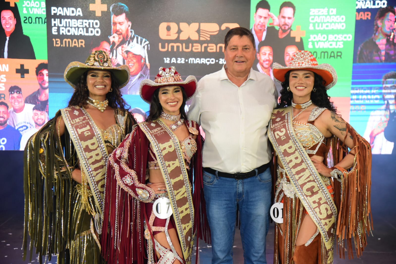 Ao lado de Mikaela, Sofia Galvão Martins, 22 anos, foi eleita primeira princesa e Andressa Yoshida, 30 anos, recebeu o título de segunda princesa, completando o trio que terá a missão institucional de representar a Expo Umuarama ao longo de 2026.