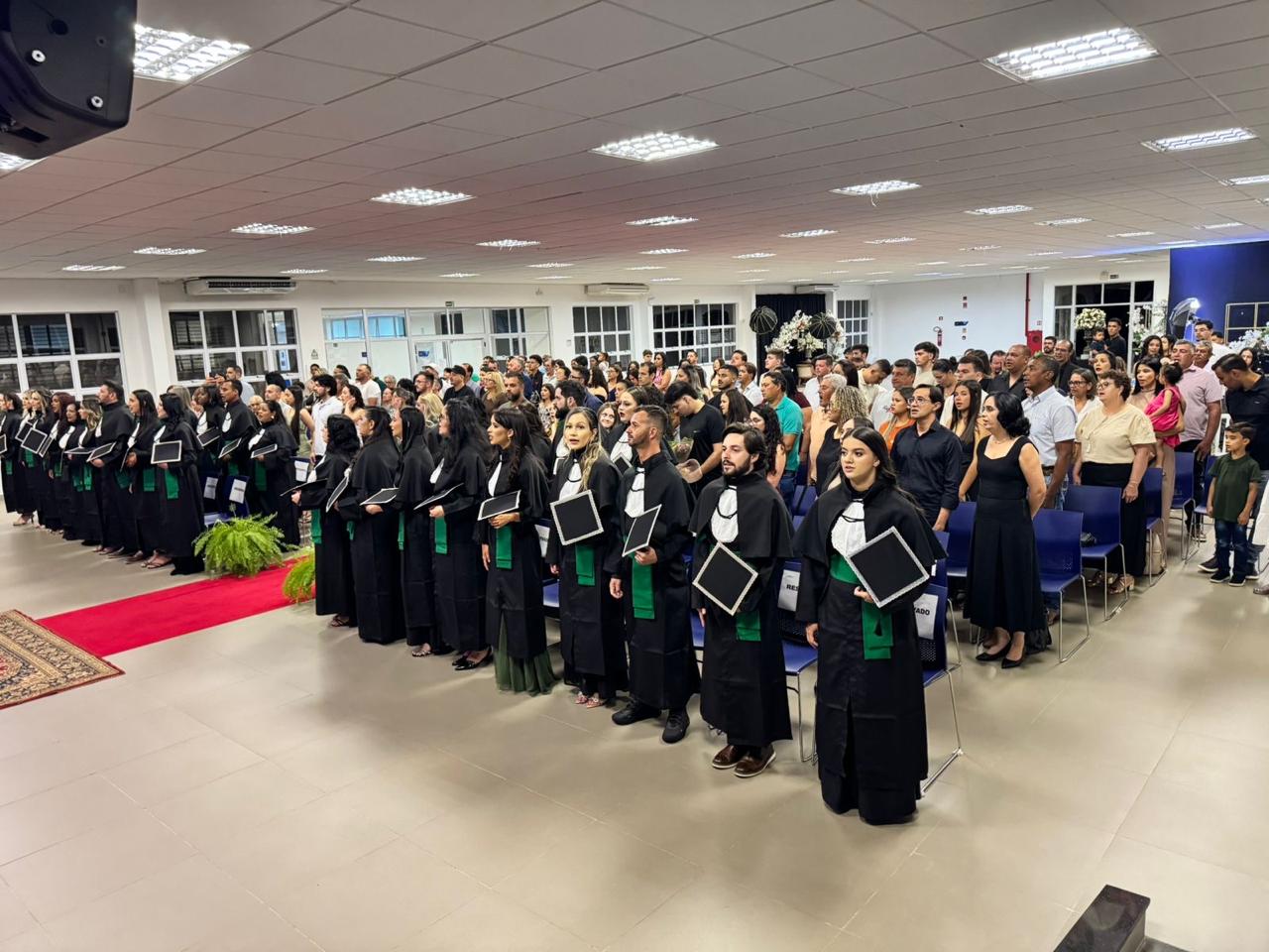 A Paraninfa da Turma, Prof.ª Arietha da Hora Araujo Santos, emocionou o público ao celebrar o percurso dos estudantes. “Esta turma se distingue pela persistência e pela união. Caminharam juntos, apoiaram-se mutuamente e chegaram até aqui com maturidade e propósito. É uma grande honra ter acompanhado essa trajetória e testemunhar o brilho profissional que cada um carrega”, declarou.