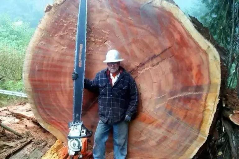 Outra imagem impressionante de uma peroba. Dependendo do tamanho, um caminhão suportava o peso de apenas uma árvore. E o transporte era sacrificado e perigoso entre as matas e a cidade pois as estradas eram de terra, esburacadas ou cobertas de barro depois das chuvas…