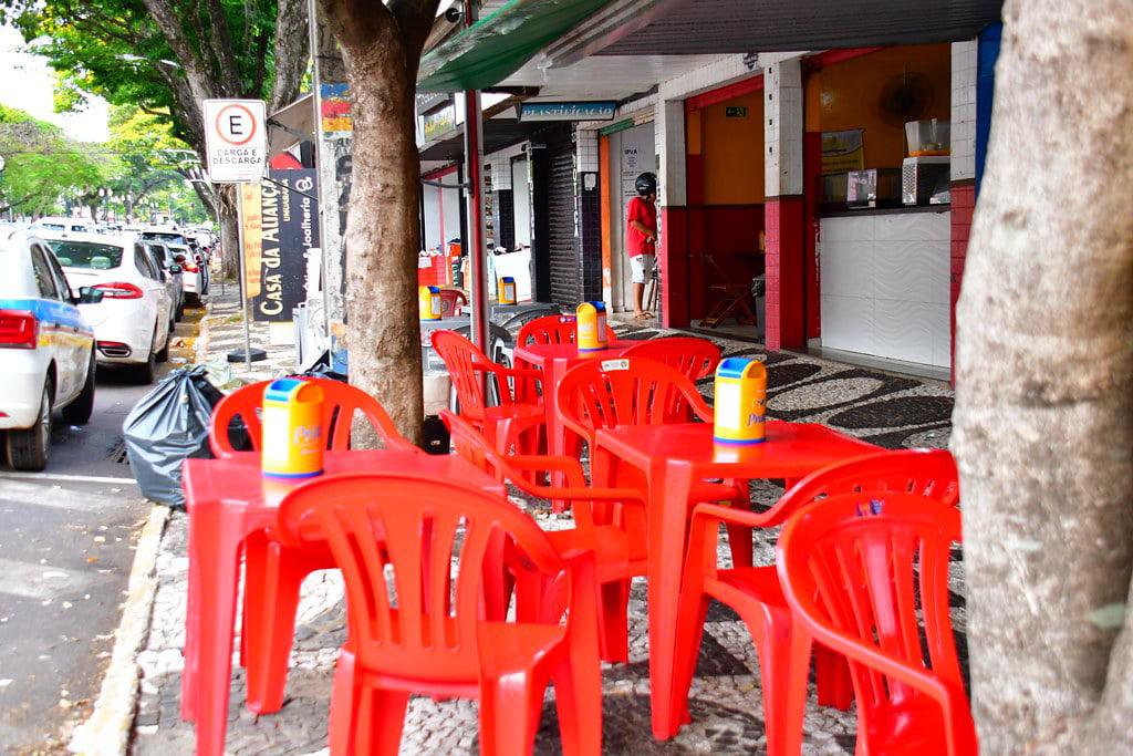 A utilização dos passeios públicos para outros fins é proibida, conforme o Código de Posturas Municipal (Lei complementar 439/2017), salvo em situações especiais e autorizadas.