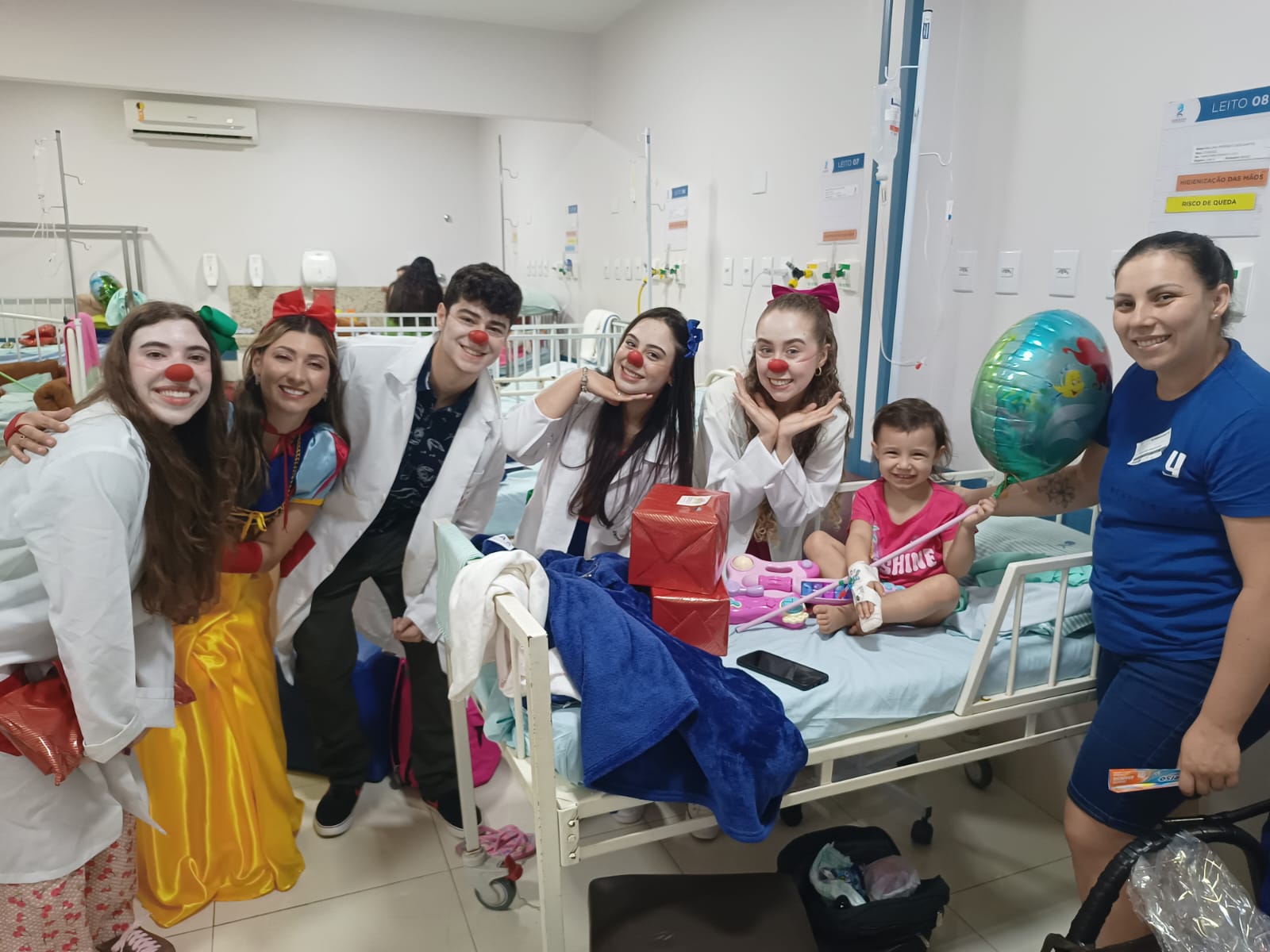 A comemoração também contou com a participação do projeto Uniparlhaços, formado por acadêmicos do curso de Medicina da Unipar. Os voluntários circularam pelos corredores e quartos da Pediatria levando música, brincadeiras, interação lúdica e muitos sorrisos. A presença do grupo reforçou a importância do acolhimento emocional no processo de recuperação das crianças.