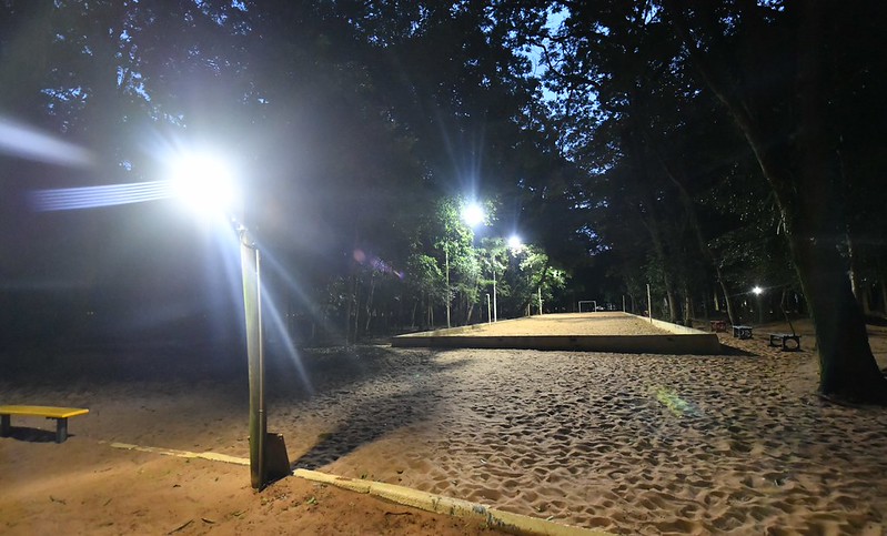A iluminação das pistas de caminhada e do parque do Bosque Uirapuru está totalmente recuperada. O espaço ganhou ainda novas luminárias sobre as quadras de areia, o que possibilita agora a utilização em horário noturno. E a Secretaria Municipal de Serviços Públicos reforçou a areia no parquinho infantil.
