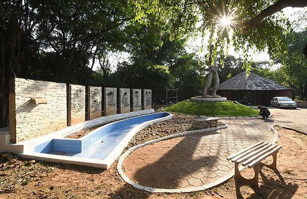 Para fazer companhia ao Índio Xetá, Utrabo criou um gradil próximo ao monumento em meia dúzia de placas de concreto com imagens indígenas feitas em metal, que também atraem a atenção do público que fica observando os detalhes de cada desenho.